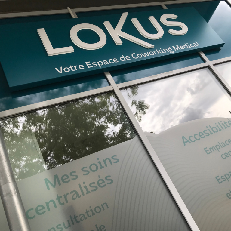 Nous sommes fiers d'avoir réalisé l'ensemble de la signalétique, tant à l'extérieur qu'à l'intérieur de Lokus. Pour l'extérieur, nous avons opté pour une impression sur film dépoli, accompagnée de la fabrication et de la pose d'une enseigne caisson lumineuse.