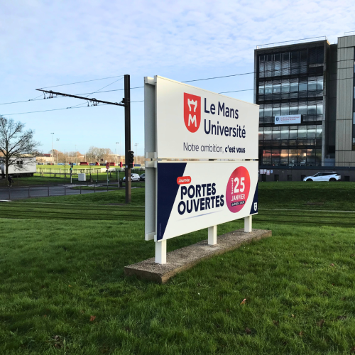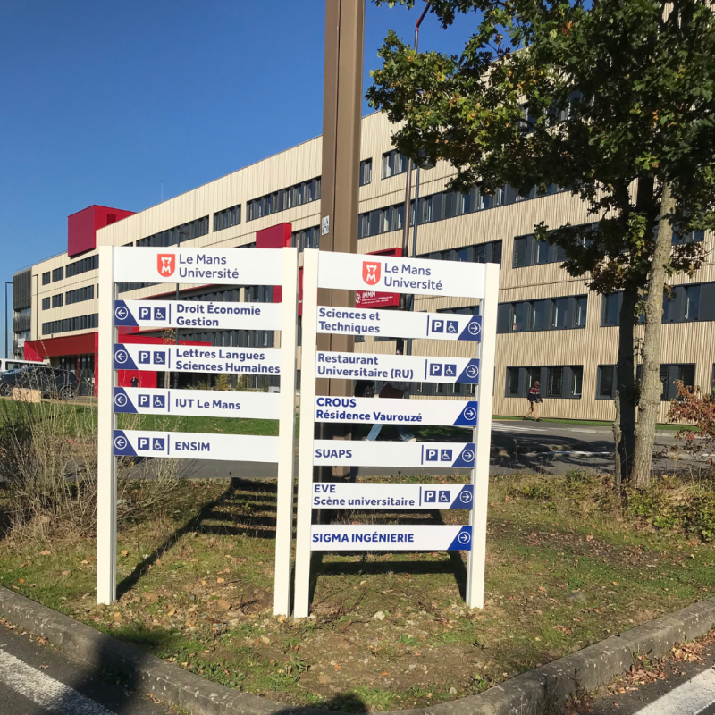 À partir des fichiers graphiques fournis par Le Mans Université, nos équipes ont assuré l’impression et la fabrication complète de la signalétique dans notre atelier au Mans.